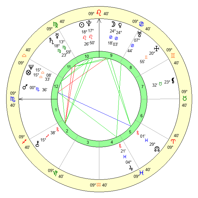 | Mercury | 13 Virgo 59 | 4 Leo 15 | 27 Libra 6 |