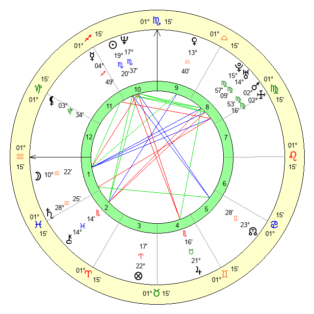 | Mars | 2 Virgo 54 | 5 Sagittarius 10 | 26 Virgo 20 |