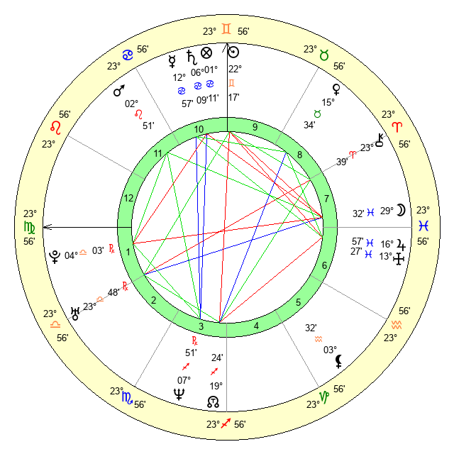 | Sun | 22 Gemini 17 | 22 Gemini 56 | 10 Leo 58 |