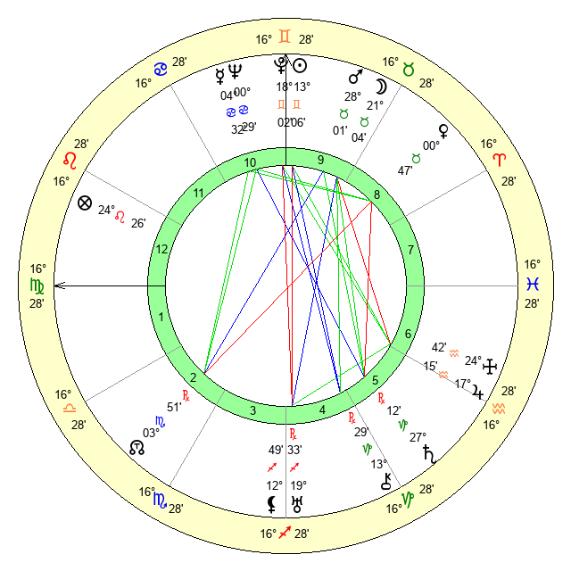 | Moon | 21 Taurus 8 | 1 Libra 44 | 27 Scorpio 43 |