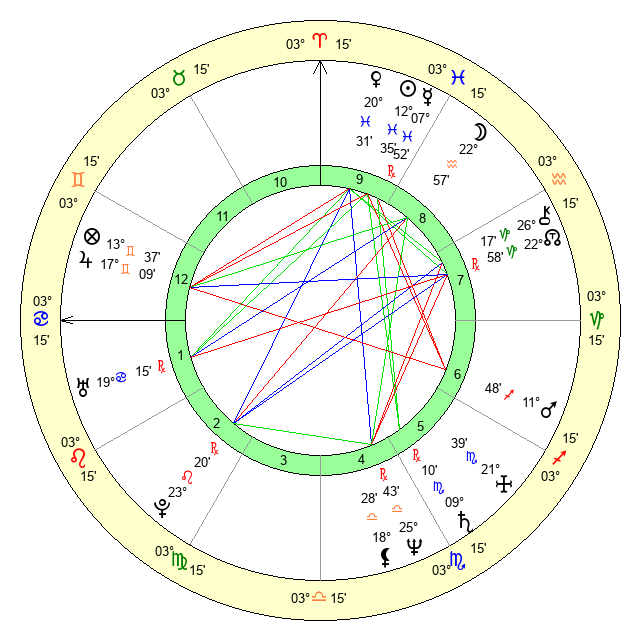 | Sun | 12 Pisces 35 | 13 Pisces 22 | 22 Taurus 23 |
