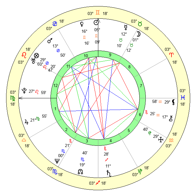 | Venus | 16 Gemini 17 | 19 Aries 57 | 9 Virgo 10 |