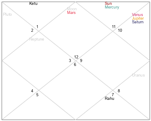 | Rahu | 6 Scorpio 48 | 27 Pisces 48 | 0 Scorpio 17 |