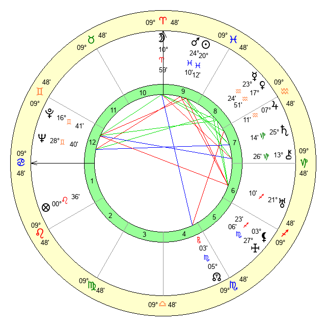 | Moon | 10 Aries 59 | 22 Leo 9 | 21 Libra 33 |