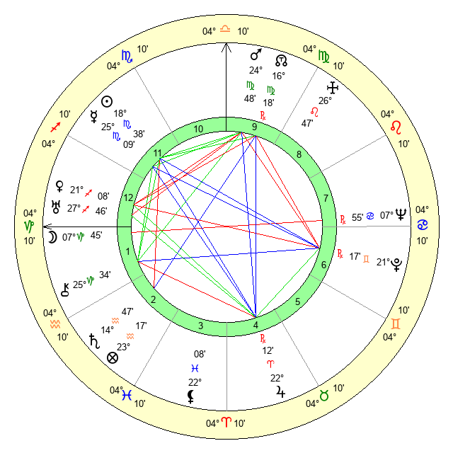 | Mars | 24 Virgo 49 | 4 Sagittarius 59 | 22 Scorpio 32 |