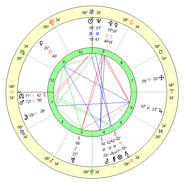 | Sun | 10 Cancer 19 | 11 Cancer 46 | 8 Scorpio 51 |