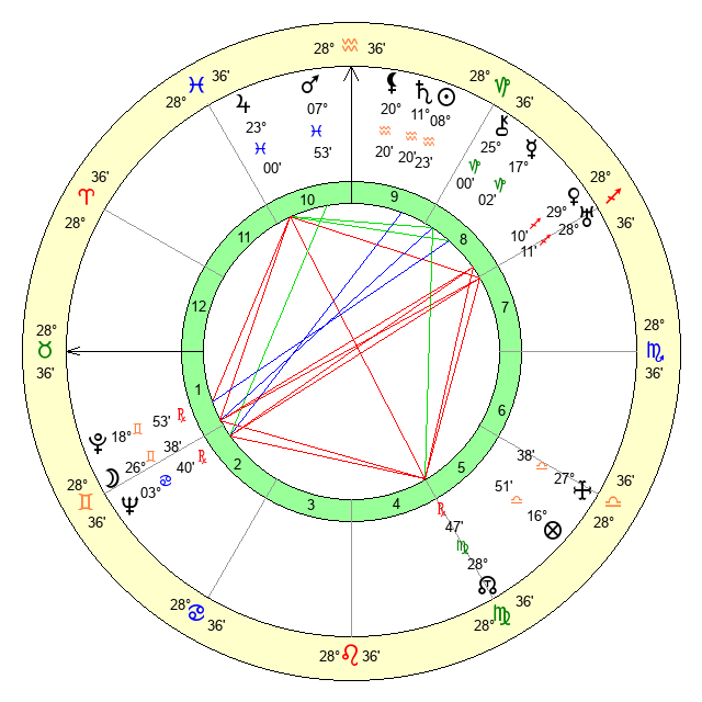 | Sun | 8 Aquarius 23 | 10 Aquarius 2 | 7 Gemini 51 |