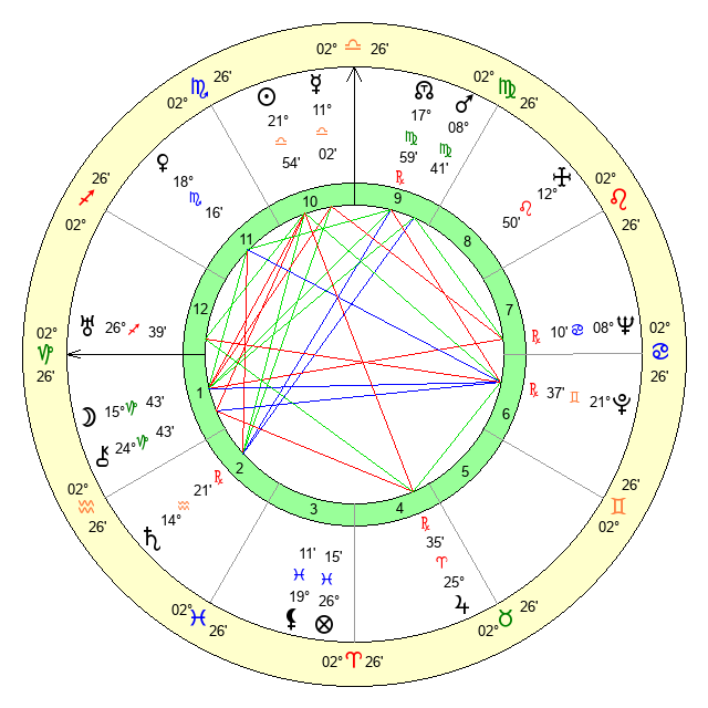 | Sun | 21 Libra 54 | 22 Libra 35 | 24 Aquarius 21 |