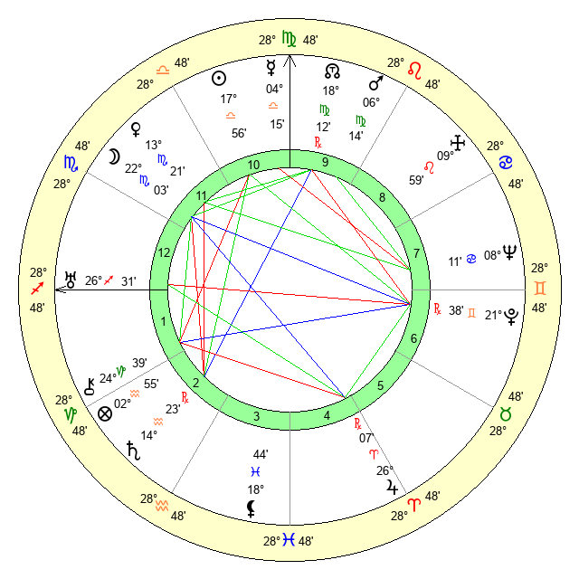 | Mars | 6 Virgo 15 | 13 Scorpio 13 | 12 Scorpio 25 |