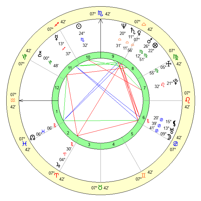 | Mars | 26 Virgo 13 | 9 Sagittarius 31 | 4 Scorpio 43 |
