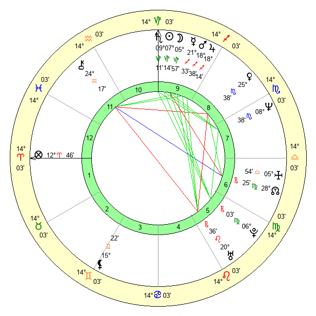 | Pluto | 6 Virgo 2 | 0 Aquarius 59 | 4 Virgo 40 |