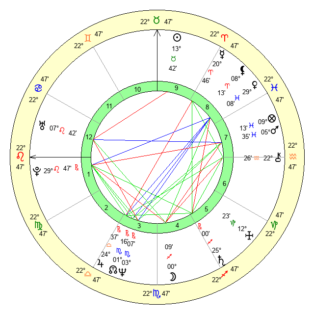 | Mars | 5 Pisces 37 | 7 Leo 19 | 23 Aries 9 |