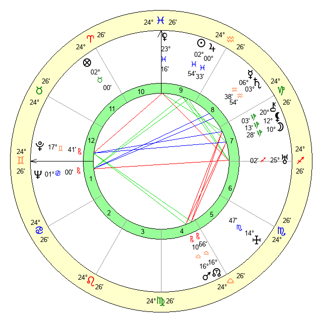 | Sun | 2 Pisces 55 | 4 Pisces 19 | 1 Cancer 59 |
