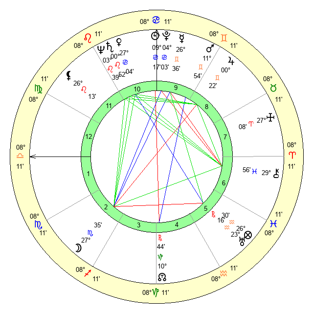 | Moon | 27 Scorpio 32 | 28 Virgo 26 | 12 Scorpio 39 |