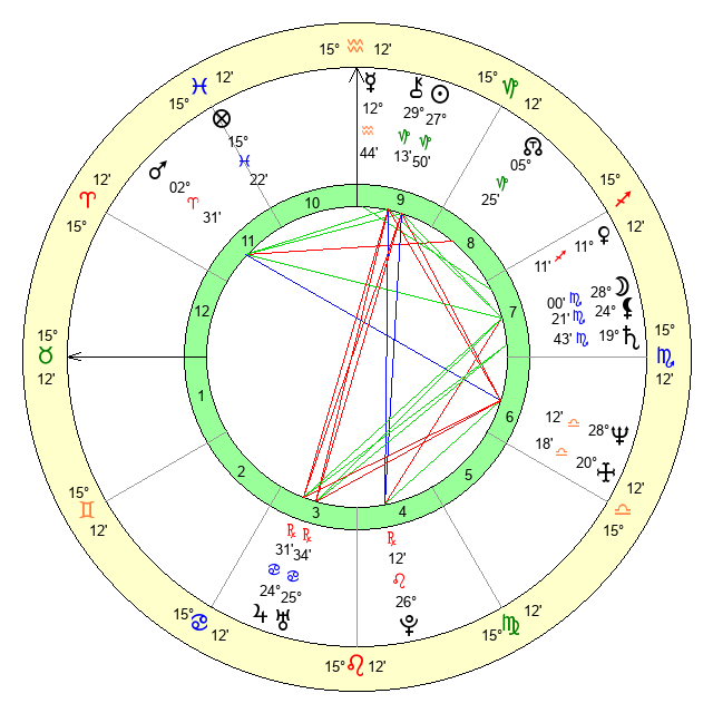 | Moon | 27 Scorpio 59 | 24 Virgo 40 | 23 Gemini 30 |