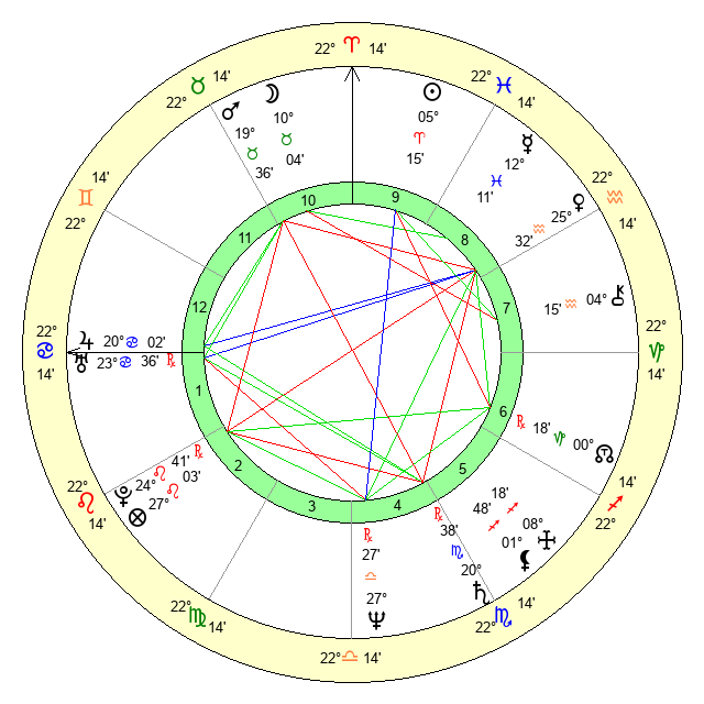 | Sun | 5 Aries 15 | 6 Aries 17 | 13 Gemini 17 |