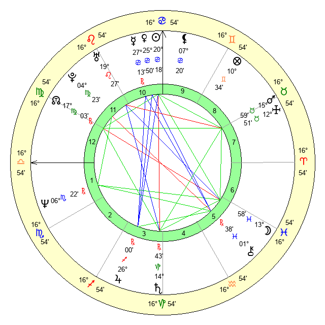 | Venus | 25 Cancer 51 | 8 Gemini 58 | 15 Libra 52 |