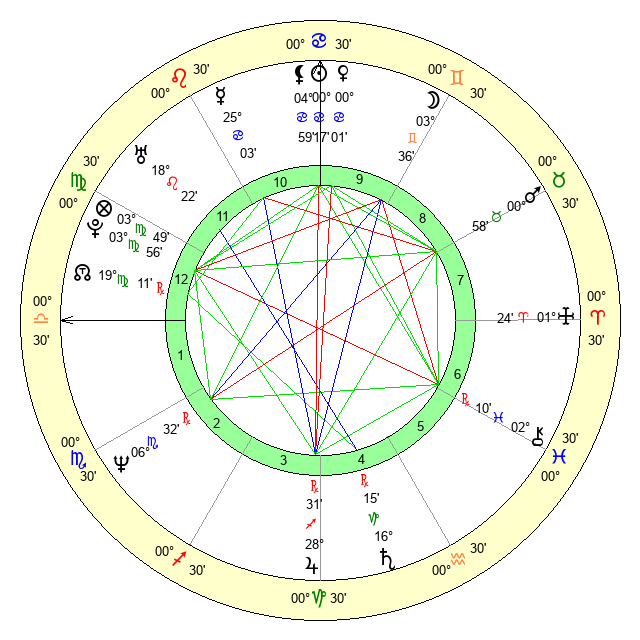 | Sun | 0 Cancer 17 | 0 Cancer 34 | 2 Virgo 28 |