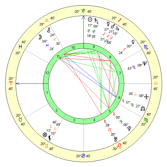 | Moon | 4 Pisces 20 | 17 Aquarius 5 | 11 Cancer 32 |