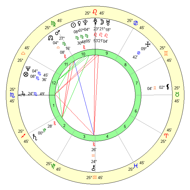 | Mars | 27 Virgo 16 | 16 Libra 23 | 11 Scorpio 7 |