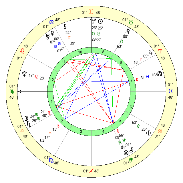 | Saturn | 26 Virgo 14 | 29 Pisces 13 | 29 Virgo 2 |
