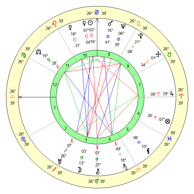 | Mars | 16 Cancer 42 | 22 Virgo 27 | 2 Libra 0 |