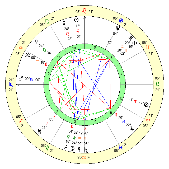 | Mars | 0 Scorpio 0 | 29 Virgo 50 | 25 Capricorn 34 |