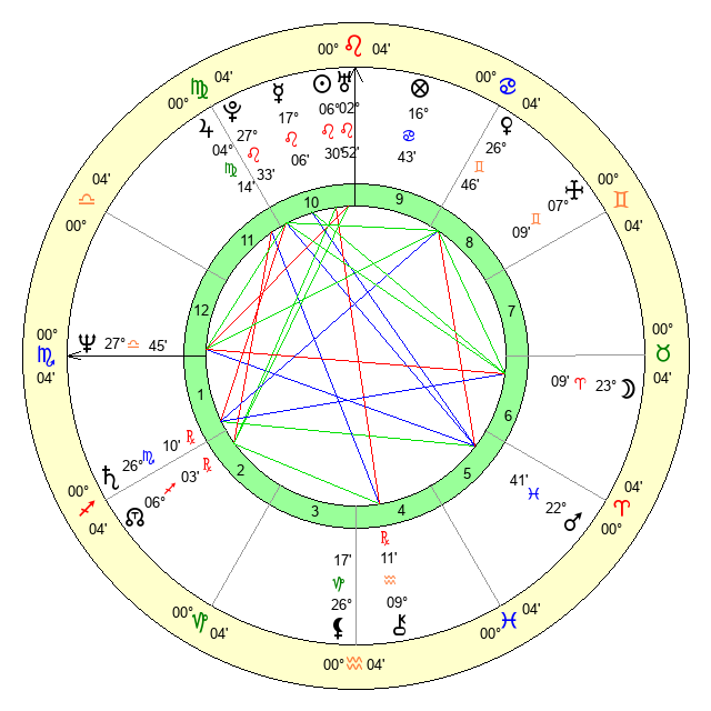| Neptune | 27 Libra 45 | 2 Aries 0 | 29 Libra 32 |