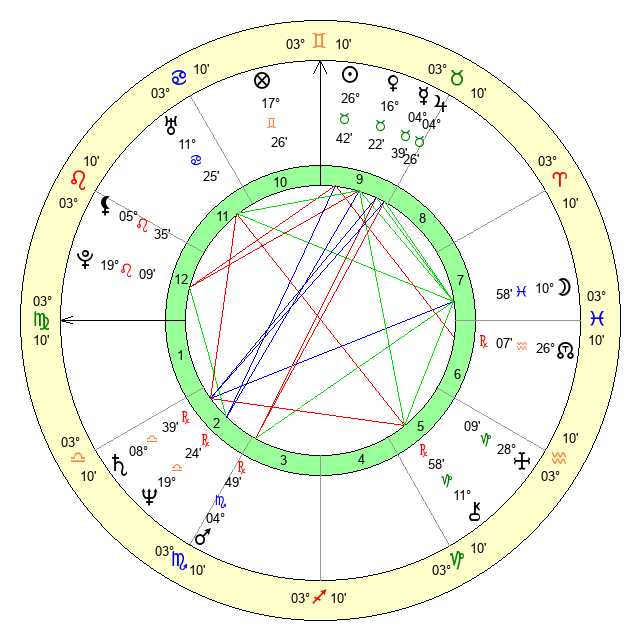 | Moon | 10 Pisces 58 | 23 Capricorn 20 | 1 Scorpio 57 |