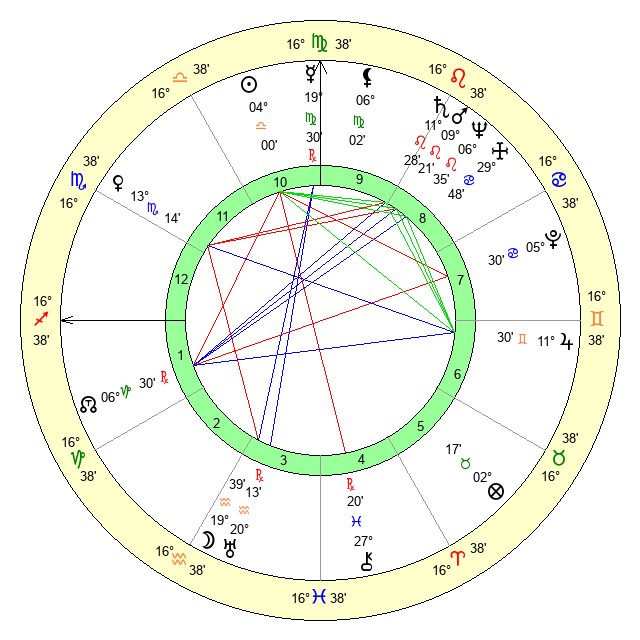 | Mars | 9 Leo 22 | 3 Scorpio 38 | 0 Libra 32 |