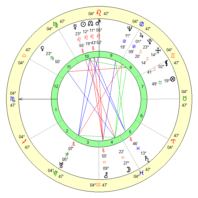 | Mars | 5 Leo 53 | 29 Virgo 13 | 20 Libra 53 |