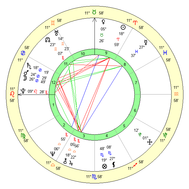 Pluto | 9 Leo 27 | 3 Aquarius 40 | 10 Leo 20 |