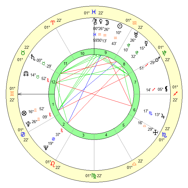 | Moon | 26 Aquarius 16 | 10 Pisces 40 | 27 Aries 42 |