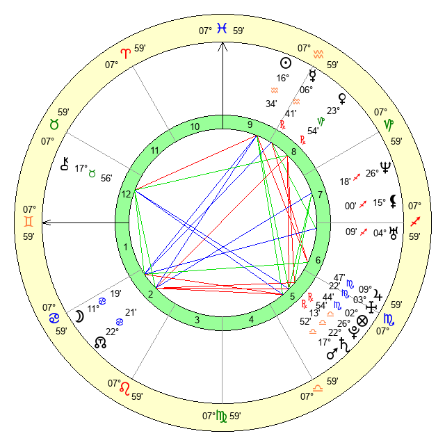 | Sun | 16 Aquarius 34 | 17 Aquarius 9 | 29 Pisces 46 |