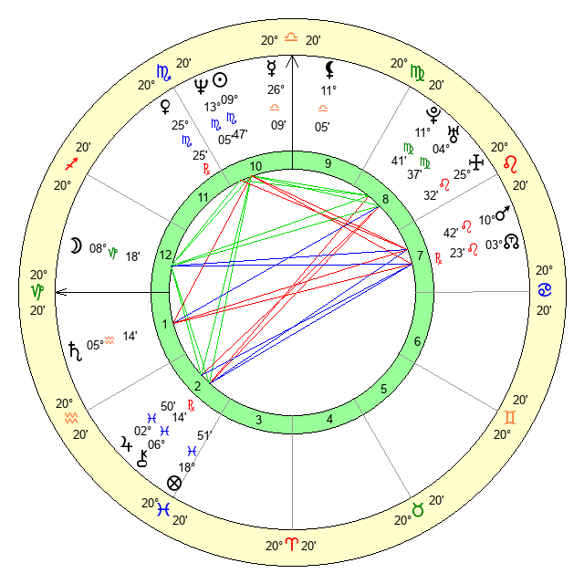 | Neptune | 13 Scorpio 5 | 29 Pisces 44 | 15 Scorpio 9 |