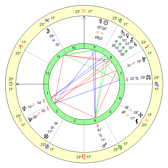 | Mars | 11 Virgo 40 | 22 Cancer 53 | 6 Virgo 42 |