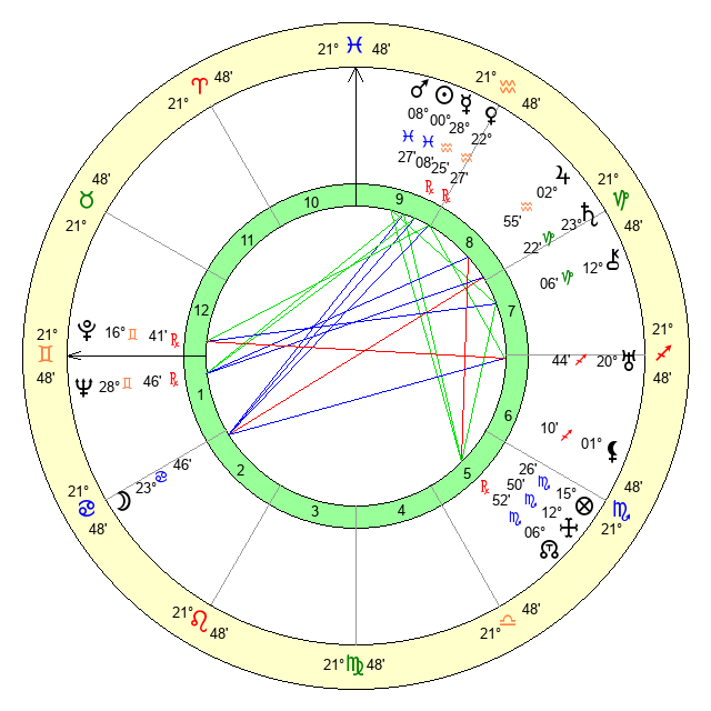 | Moon | 23 Cancer 55 | 19 Scorpio 53 | 18 Capricorn 8 |