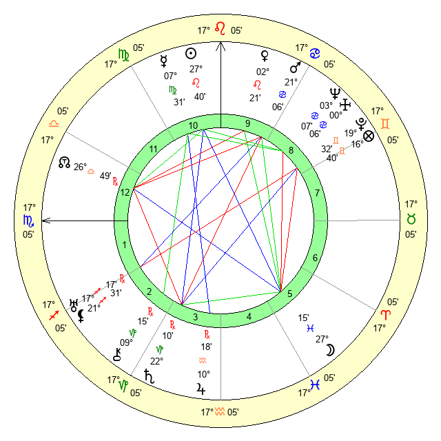 | Mercury | 7 Virgo 31 | 10 Leo 35 | 5 Capricorn 43 |