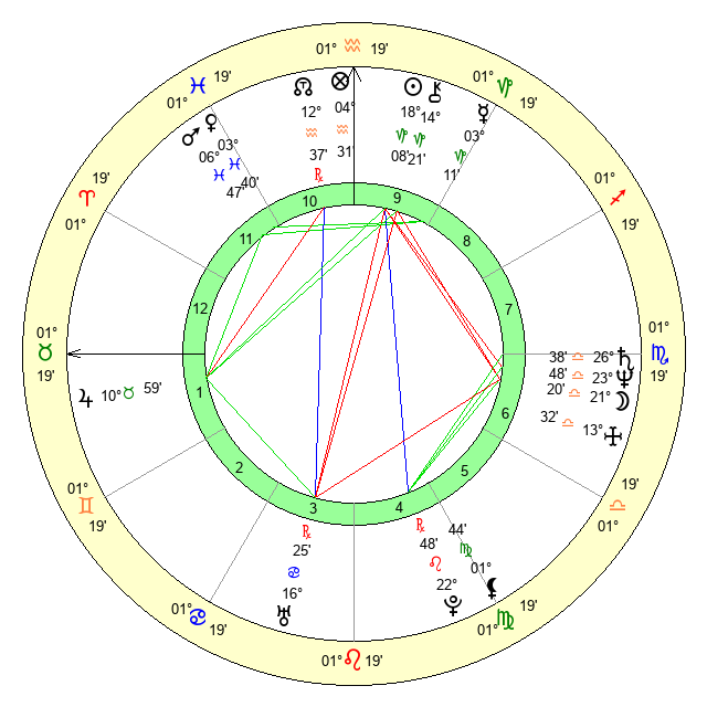 | Moon | 21 Libra 12 | 11 Taurus 11 | 23 Gemini 27 |