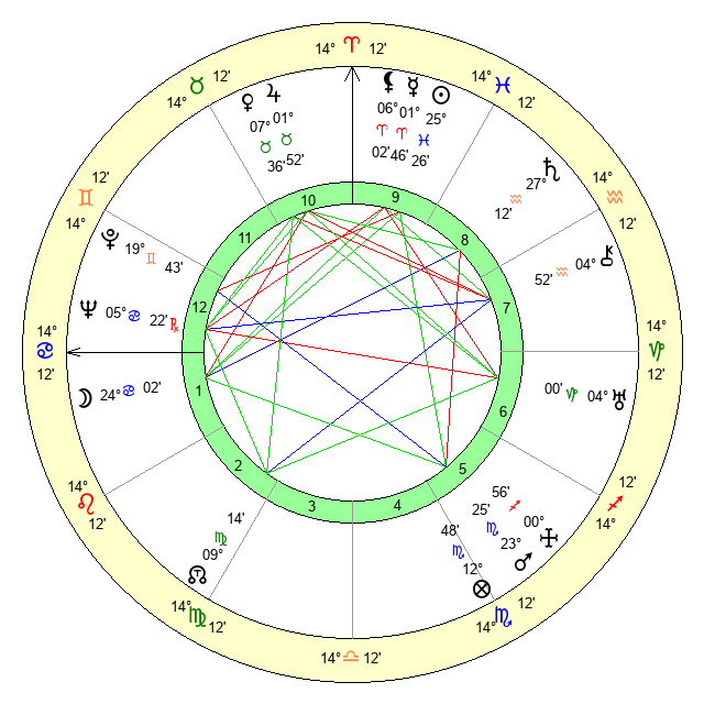 | Mars | 23 Scorpio 24 | 19 Cancer 24 | 12 Scorpio 52 |