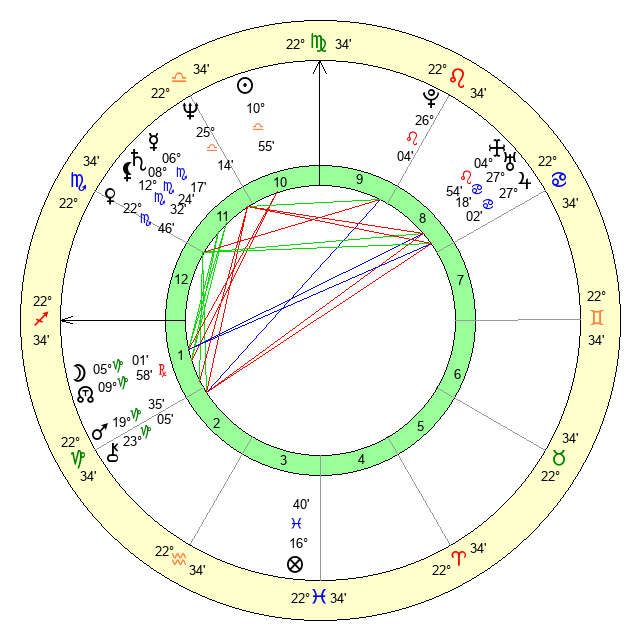 | Venus | 22 Scorpio 46 | 18 Virgo 38 | 16 Scorpio 9 |