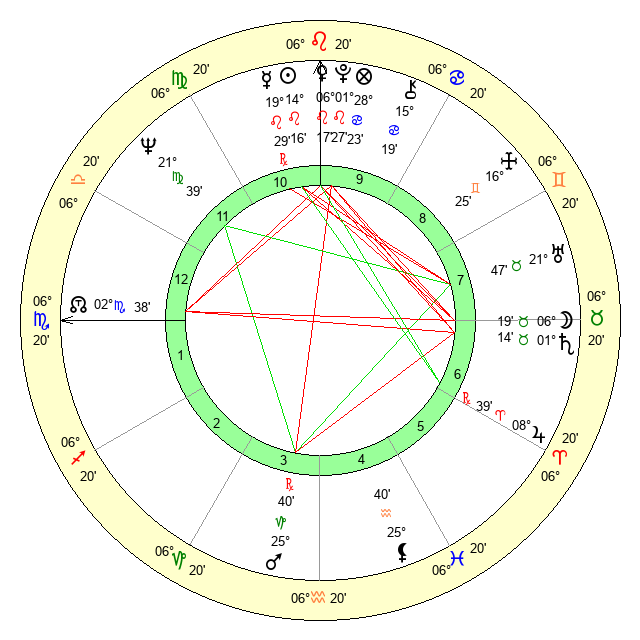 | Venus | 6 Leo 18 | 8 Cancer 46 | 23 Scorpio 13 |