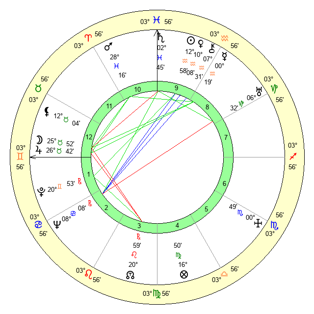| Sun | 12 Aquarius 58 | 14 Aquarius 6 | 10 Gemini 16 |