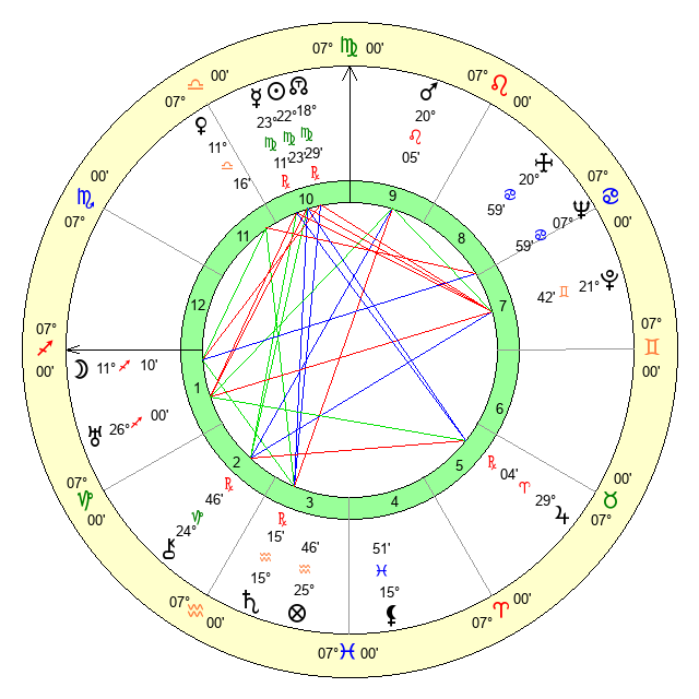| Sun | 22 Virgo 24 | 23 Virgo 6 | 23 Capricorn 54 |