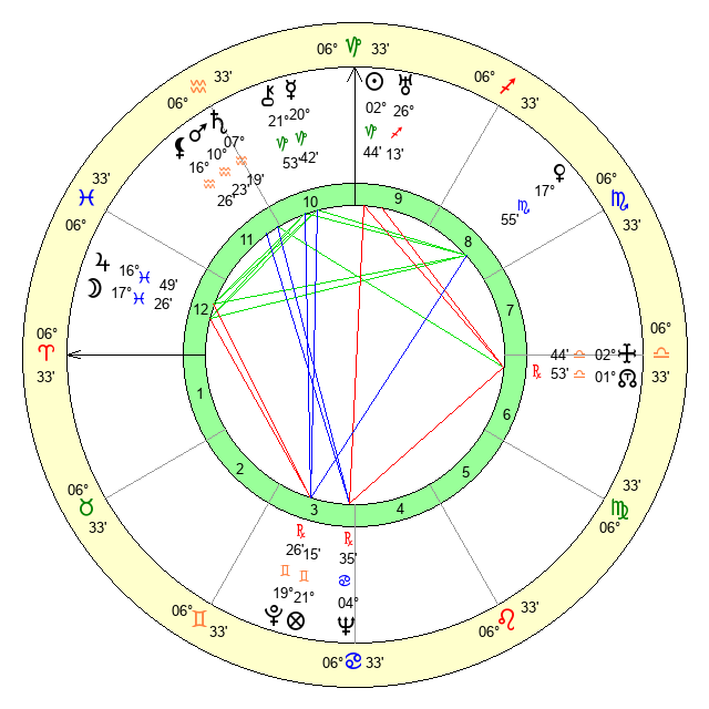 | Moon | 17 Pisces 27 | 8 Pisces 32 | 8 Virgo 26 |