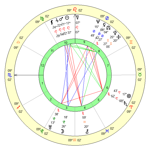 | Mars | 21 Leo 22 | 2 Libra 20 | 6 Scorpio 38 |