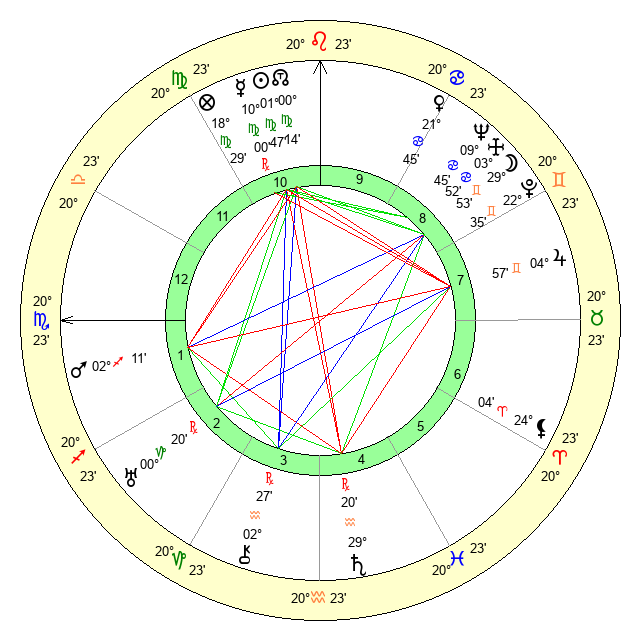 | Moon | 29 Gemini 47 | 1 Libra 26 | 27 Scorpio 40 |