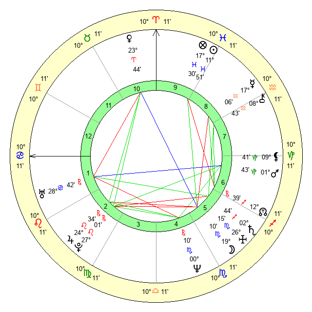 | Sun | 11 Pisces 51 | 12 Pisces 7 | 19 Taurus 45 |