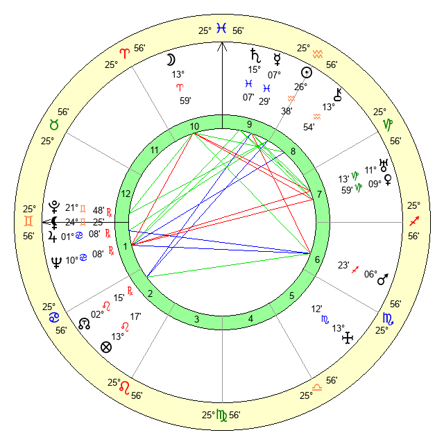 | Pluto | 21 Gemini 48 | 2 Aquarius 31 | 23 Gemini 14 |