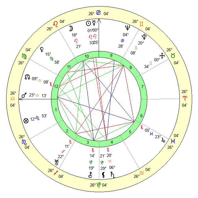 | Neptune | 4 Cancer 30 | 2 Aries 3 | 5 Cancer 25 |